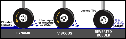 It is caused by a layer of water beneath the tire ,which became a wedge between the tire and the runway , this thin wedge of water effectively lifts the tire off the runway surface reducing the friction forces to practically zero (TIRE NOT ROTATING ) .